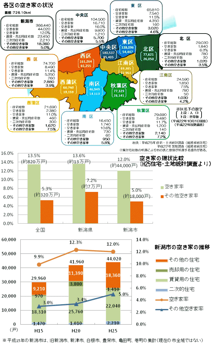 新潟市全般にいえることですが、空き家率が高いのも課題の一つです。