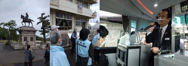 万代長嶺小学校地区民児協では一泊研修として10年ぶりに宮城県震災遺構を訪ねる 勉強会を行いました。2022年3月の地震で損壊した伊達政宗像が今年修理を終えて帰還されたので、見学してきました。