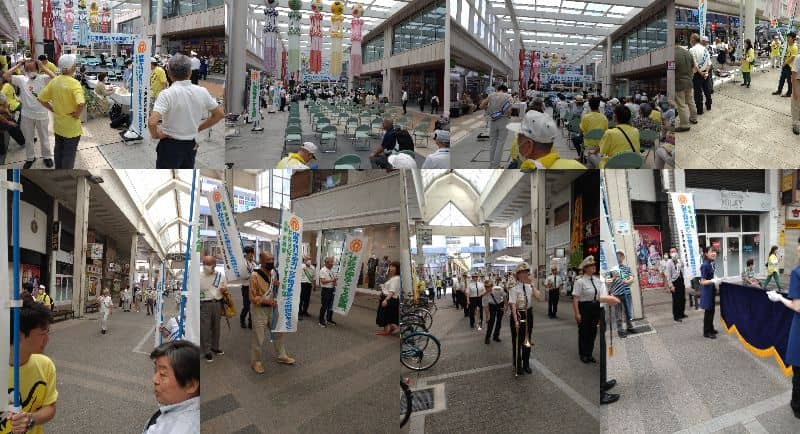 新潟中央保護司会主催の社明(社会を明るくする)運動の行進が古町ルフルと古町通6~7番町で行われ、 新潟県警音楽隊による演奏がストリートに響き渡りました。「ミッキーマウスマーチ」や「北酒場」、久保田早紀の「異邦人」、そして「ふるさと」 などが演奏され、アンコールとして「勇気100%」が演奏されました。