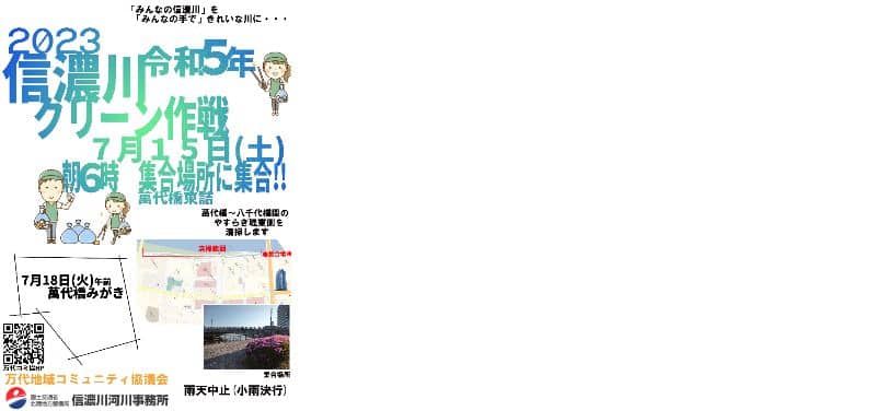 7月15日に朝早いですが、信濃川クリーン作戦が開催されます。小雨決行。