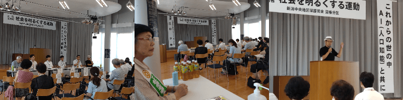 新潟中央保護司会沼垂分区主催の社会を明るくする運動ミニ集会がほんぽーとの3Fビーンズホールで開かれました。 ナマラ代表の江口歩氏による「これからの世の中 AI(人工知能)と共に」をテーマに講演が行われ、近隣小中学校の校長教頭先生方とディスカッションが行われました。