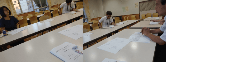 まずは地震後に襲った1mの津波が押し寄せたあとの学校に避難所を開設するために今回参加の8名がどう動けばいいか、相談します。 増田さんからは体育館を提案されましたが、1mの津波がおしよせた体育館は避難所には向かないと判断され、校舎に解説することになりました 状況付与①では学校に人が集まってきて手元には学校を開ける鍵があるという前提で何をするかが問われます。 A避難所運営本部を立ち上げる B門を開けて避難所に避難民をいれる 5対3でAを選択しました。 次に門前で避難所運営本部ができたと仮定して、本部長、副本部長を決めるかどうかですが、 A到着順 B平時にあらかじめ決めておく Cほか との質問にはBが7人に対してCが1人いました。「Aを基本で本部長候補者到着後に交代する」との意見が出ました。 次になにをするかという問いに対して、 A避難者の誘導 B施設の安全確認 Cその他 にはBが8人手を上げました。 施設の安全確認の段階では、 A体育館 B校舎内 Cその他 体育館に5人、校舎に3人と分かれましたが、夜間等安全確認できるか?とか水浸しの可能性が指摘されました。 などなど8つの状況付与に対して意見が交わされ、最後に「安全確認チェックシート」に用意しておくべき物資を書き入れ、 懐中電灯・ヘルメット・軍手・防塵マスクなどを記して時間いっぱいになったので閉会しました。