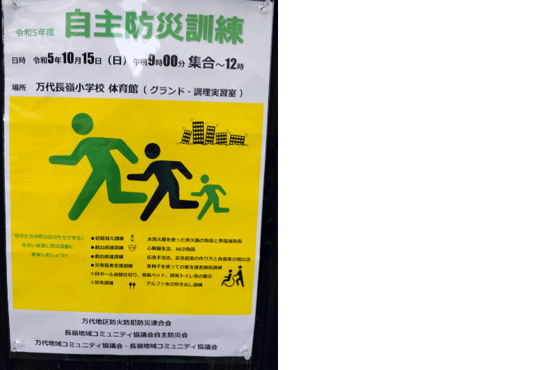 万代地域防連と長嶺コミ協防連では、10月15日に開催される防災訓練が行われます。