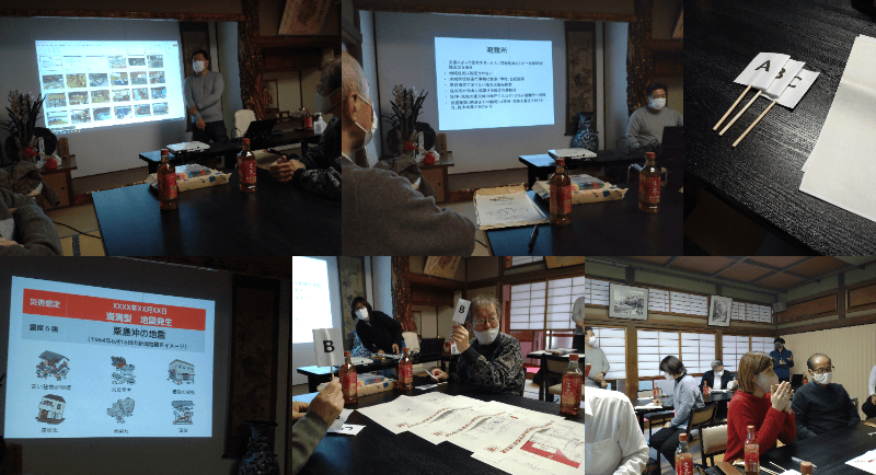 今年の6月以来となる避難所運営に関する講習会を三社神社を会場として行いました。参加15名。 大阪公立大学 都市科学・防災研究センターの生田英輔教授による最近の災害における避難所運営の実態についてレポートがなされ、 引き続き同じく大阪公立大学 都市科学・防災研究センターの増田裕子さまより、災害が起こった時の避難所運営に関する判断を 地元参加の8名を基準に各所で判断していく避難所開設アクションカードを用いたレクチャーを行いました。