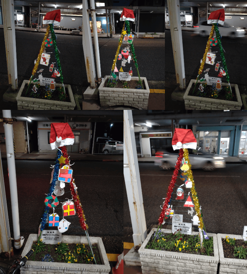 万代長嶺小学校の3年生による道路アダプトのプランターにクリスマスの飾り付けが施されました。