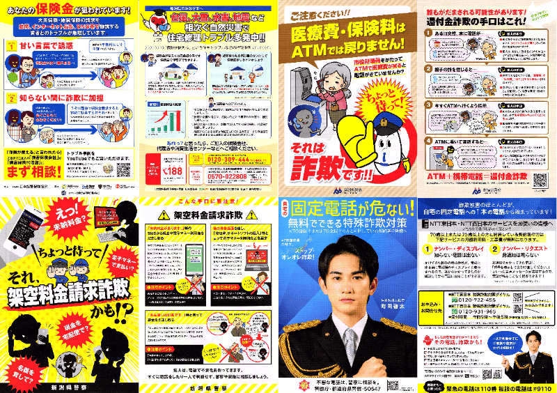 新潟県警防災の藤田警部補を講師に迎えて、昨年来から多様化した特殊詐欺についての対応などの講習会が開かれました。 昨年(令和5年)の県全体の特殊詐欺被害状況は、件数にして、203件。被害総額は5億7千万円超。 新潟市管内でも、11件、9千万円超の被害が出ています。しかしこれはあくまで被害届がだされた事例ですので、 現実的にはもっといくのだろうと思われます。 最近はオレオレ詐欺に加え、還付金などの預貯金詐欺、架空料金(請求)詐欺、融資金詐欺、交際斡旋詐欺、投資金詐欺などなど、 幅広く詐欺行為が行われているとのことです。なかには銀行で警察官が静止しているにも関わらず、その手を払いのけ、強引に振り込む人もいるとのこと。 誰しも「自分は大丈夫」思っていてもいとも簡単に詐欺師の言葉に耳を傾けてしまう現実があると。講師は訴えっていました。@東コミセン