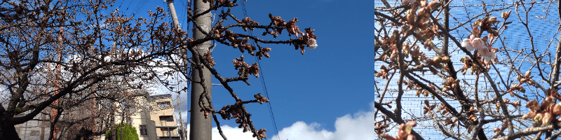 新潟でトップクラスに早く咲く万代長嶺小学校の河津桜が寒風吹く中、咲きました。(R.06.2.26撮影) 過去記事を見るに昨年2023年は3月1日、一昨年2022年は3月18日でしたので今年の桜は格段に早いです。