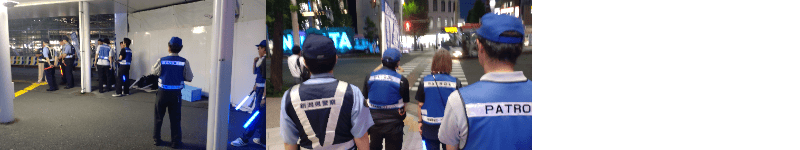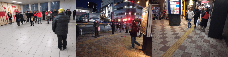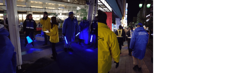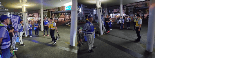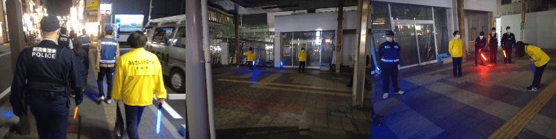 観光案内所が撤去され、暗い集合場所の中、駅前パトロールが行われました。