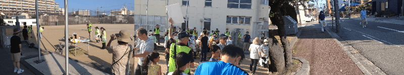 薄曇りの中、宮浦中学校校区育成協クリーン作戦が行われました。猛暑予報でしたが比較的涼しい日でした。万代長嶺小学校には地域の方々、 学校の先生方、子どもたちや卒業生が集まりました。約70名。今回は栗の木バイパス方面も回りました。