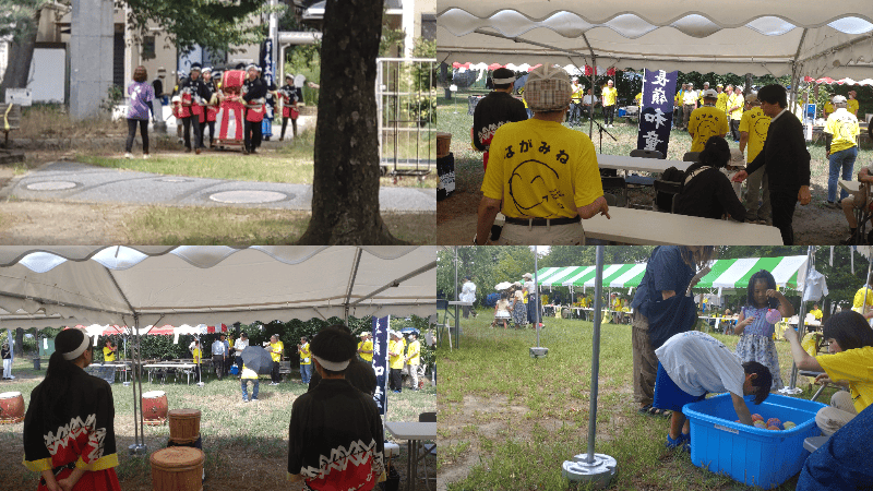 台風が上手く逸れてくれて、かつ時折太陽がでて暑い中、東(あずま)公園でコミ協夏祭りが開催されました。長嶺コミ協主催・万代コミ協共催