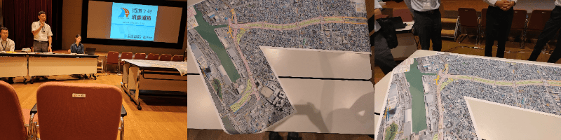 万代地域における防災の取り組みを発表し合う防災シンポジウム「減災活動の担い手になるコミュニティの防災人材とは?」 を行いました。@三社神社。 基調講演として小松雅人氏(国土交通省北陸地方整備局総務部長)より「災害時における避難拠点の現状と課題」についてお話しいただきました。 成果報告として関谷浩史氏(新潟家率大学国際地域学部准教授)より「子どもを対象としたメタバースを活用した防災」についてお話をいただきました。 休憩を挟んで、関谷氏を司会に、小松雅人氏、生田英輔氏(大阪公立大学)、深谷成信氏(新潟市議会議員(地域在住))、金子泰徳氏(エヌシーイー株式会社・ 防災士) により「新潟地震60年をむかえて~地域リスクを軽減される人材づくりと組織づくり」と題してパネルディスカッションを行いました。