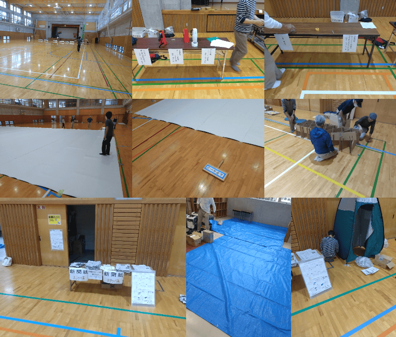 明日の避難訓練の準備を行いました。昨年したはずなのに全く覚えていません。手探りで会場を準備していきます。