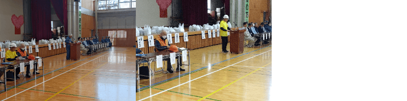 きました。最後は大竹長嶺コミ協会長より閉会の挨拶をいただきました。帰りは婦人部の炊いたアルファ米や賞味期限間近な