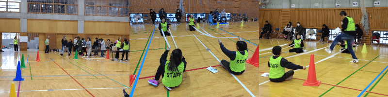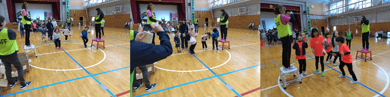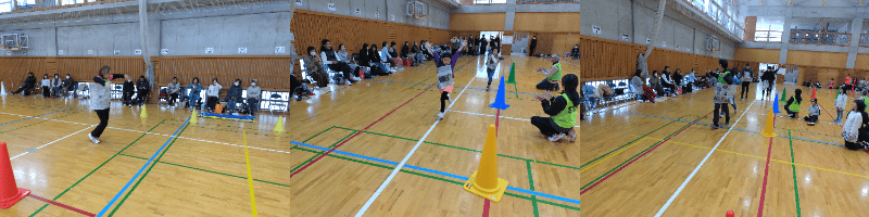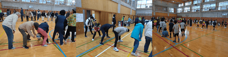 11月前半一番冷え込む中、コミ協共催の三世代運動会が万代長嶺小学校体育館で行われました。142名参加。 まずはラジオ体操、じゃんけん大会、借り物競争に早飲み競争など様々な種目が執り行われる中でアクシンデントが・・・。 それまで小学生以下は走りOKだったのですが、早飲み競争の用意された机に突っ込んで怪我をしてしまったので 大人同様早走りに変更になってしまいました。