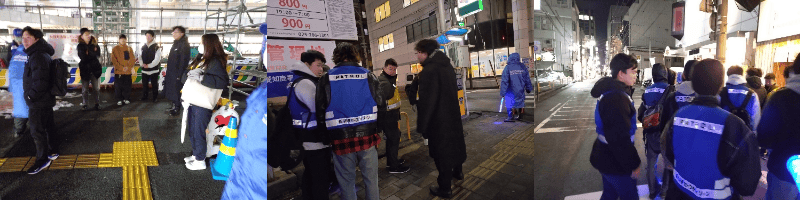 今年最初の駅前パトロールを開催しました。駅前開発工事に伴いこれまで 元観光案内所跡地を集合場所にしておりましたが、来月以降は東大通1丁目の 大屋ビル脇の駐車場前となります。