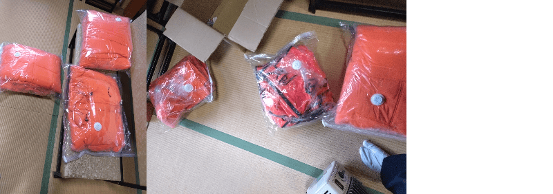 かさばる一方のスタッフジャンパーやチョッキ、帽子、コート、ビブスを圧縮袋に入れて片付けました。