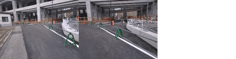 万代方面から南口方面は新潟駅を渡るか、東跨線橋を渡るか、栗の木バイパスまで行かなくては ならなかったのですが、3月31日午前10時を以て新潟駅と東跨線橋の間に2本の南側を結ぶ通りが共用となります。