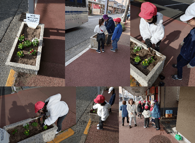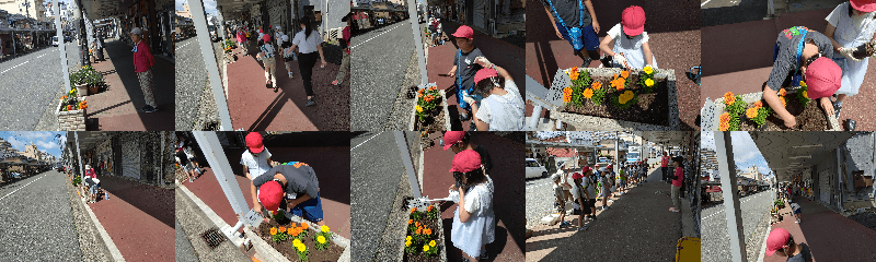 万代市民会館前と万代町通り商店街前でフラワーロード春の巻が開かれました。多くのボランティアさん達と共に2年生と3年生が マリーゴールドを花植しました。