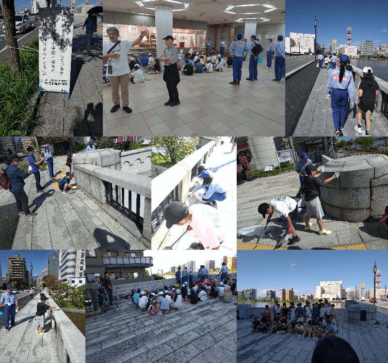 当初18日に行う予定で24日に延期になった万代長嶺小学校4年生との萬代橋みがきは熱中症警戒アラートが続いているため9月に再延期となりました。