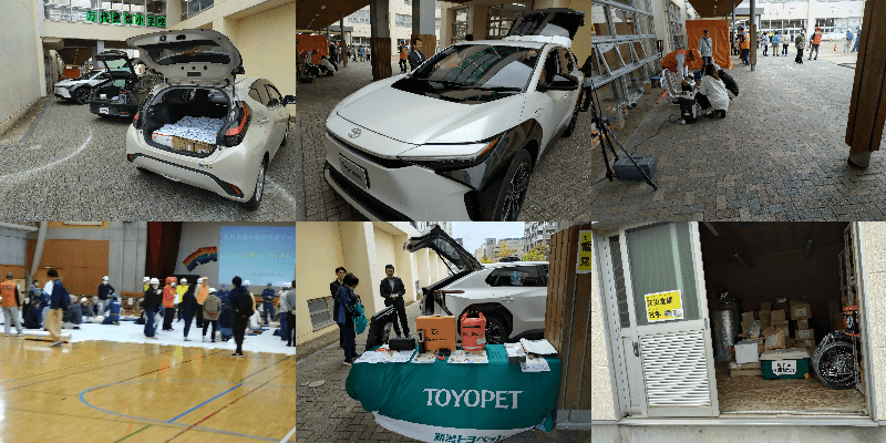 万代長嶺小学校と長嶺コミ協と共催で自主防災訓練を開催しました。今回は新潟トヨタの協力の下、 電気自動車による避難生活における電気器具の使用を試みてみました。