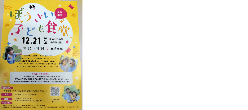 令和7年12月21日に天明会館で防災こども食堂を開催します。