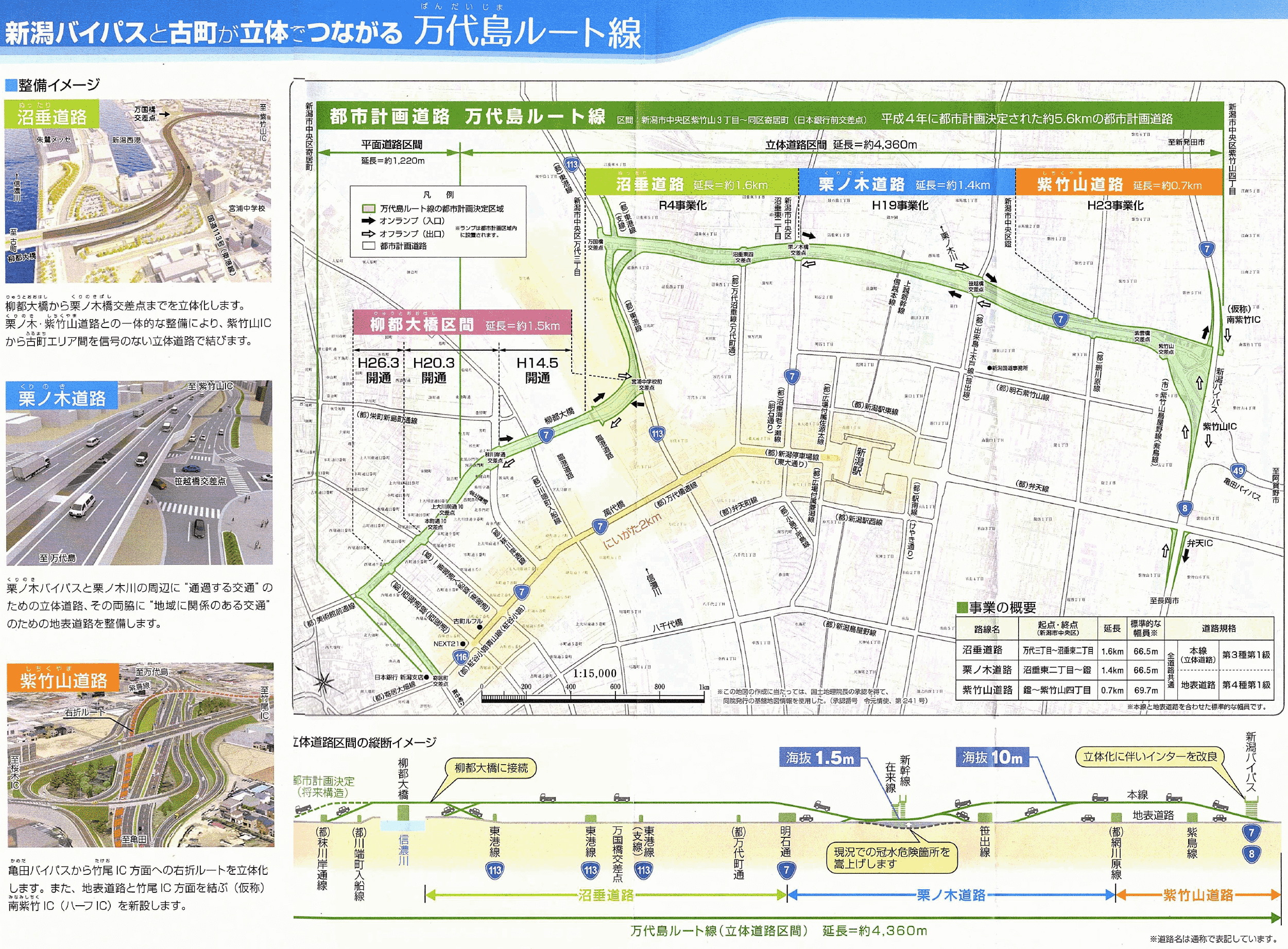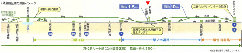 新潟南北道路・万代島ルート線の立体化事業として沼垂道路・栗ノ木道路・紫竹山道路の両事業が事業中。