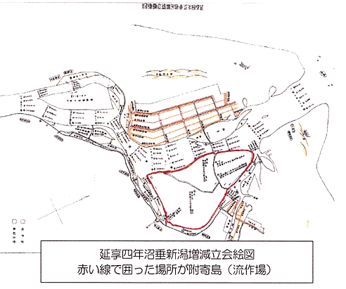 流作場の開拓は延享3年長岡藩主牧野忠敬の藩財政建て直し策で「附寄島」開拓権利を地代金2,750両で与える公募をした。此れに安倍玄的、